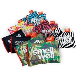 SmellWell Geruchsentferner ist in einer nicht-gewebten Tasche eingepackt, welche wie eine Membran funktioniert, die den gesamten Inhalt an der richtigen Stelle hält und aber gleichzeitig zulässt, dass der Inhalt Feuchtigkeit aus den Schuhen heraustransportieren kann. Die ganze Tasche ist mit einer weiteren Tasche aus Mikrofasern umhüllt, die den Inhalt sammelt und dem SmellWell Geruchsentferner erleichtert, nach dem Training in die Schuhe zu legen.