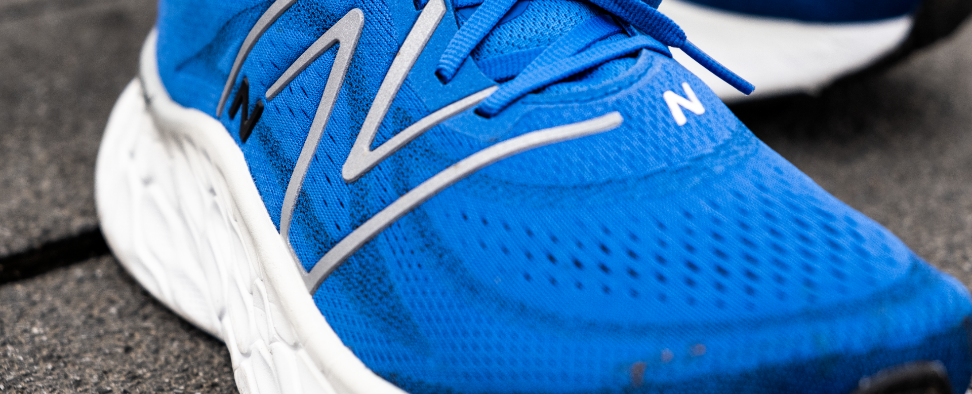 Zum Obermaterial gibt es nicht viel zu sagen. Es ist ein ganz ordentliches Engineered Mesh, das bei der New Balance Fresh Foam More V4 verwendet wird. Der Schuh ist auf einer relativ breiten Plattform konstruiert, was super angenehm ist. Aber es bedeutet auch, dass man den Schuh etwas fester schnüren muss, um sicherzustellen, dass er richtig sitzt.