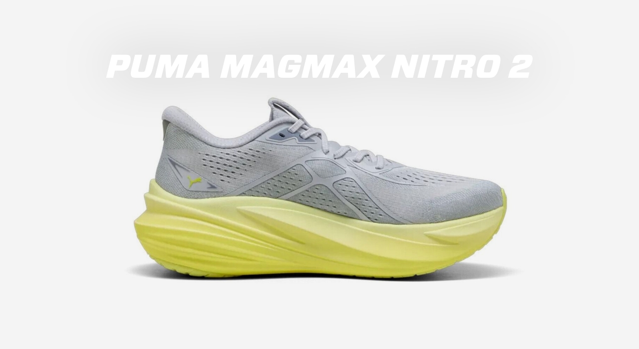 es otro zapato que no solo es súper suave: también es responsivo. MagMax Nitro 2 mide 46mm en el talón y 38 en el antepié, así que no te preocupes por sentir el suelo. La suela exterior de goma PUMAGRIP de Puma asegura durabilidad y ofrece un buen agarre en caminos de grava y bosque. MagMax Nitro 2, con su bajo peso para la categoría, se destaca como un zapato sensato para días de "tempo fácil".