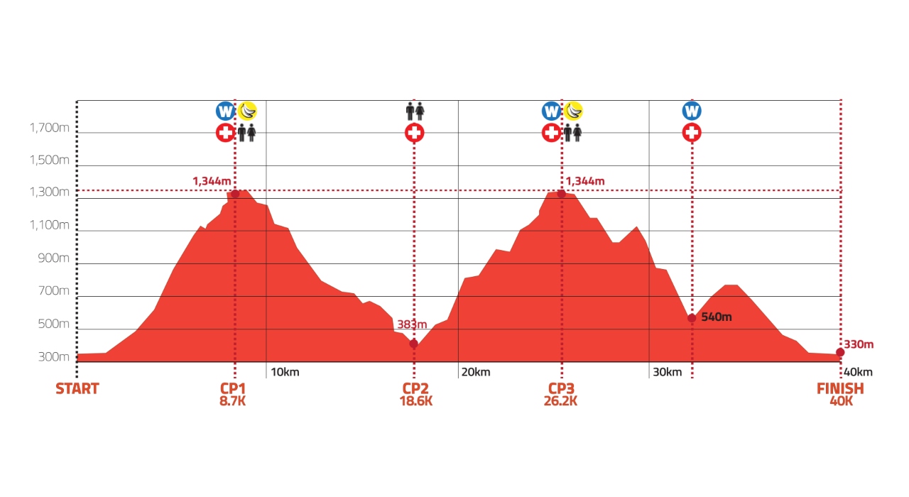 Una ruta de casi 40 km con 2777 metros de ascenso obviamente significa que llevará algo de tiempo completarla; aunque espero estar en la meta mucho antes del corte, que son 8 horas completas. Una carrera tan larga exigirá mucho de mi resistencia; pero también requerirá la ingesta de una buena porción de líquidos y carbohidratos - de eso hablaré más adelante.