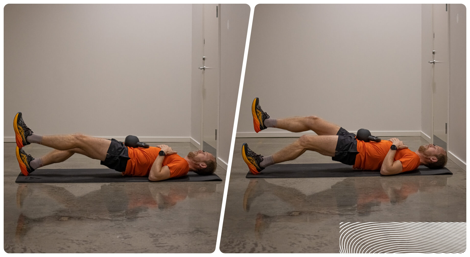 Aqui treinas vários músculos da frente - especialmente os abdominais e flexores da anca. Tanto os abdominais como os flexores da anca são muito ativos ao correr, faz sentido reforçar a força nesta área.